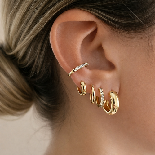 10-Piece Gold Huggie & Hoop Earring Set – Zircon