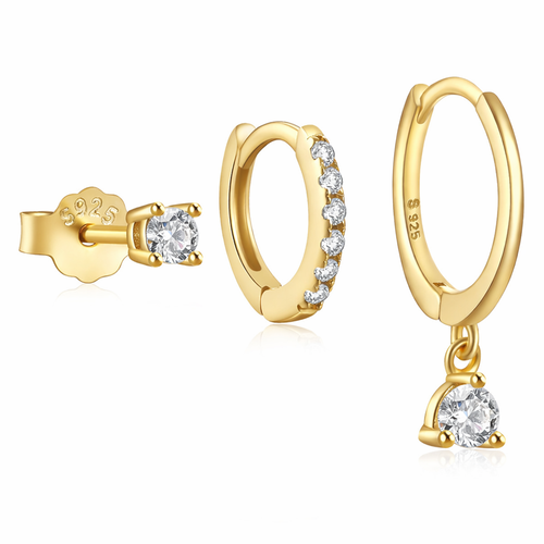 Gold Plated Zircon Huggie Earrings -