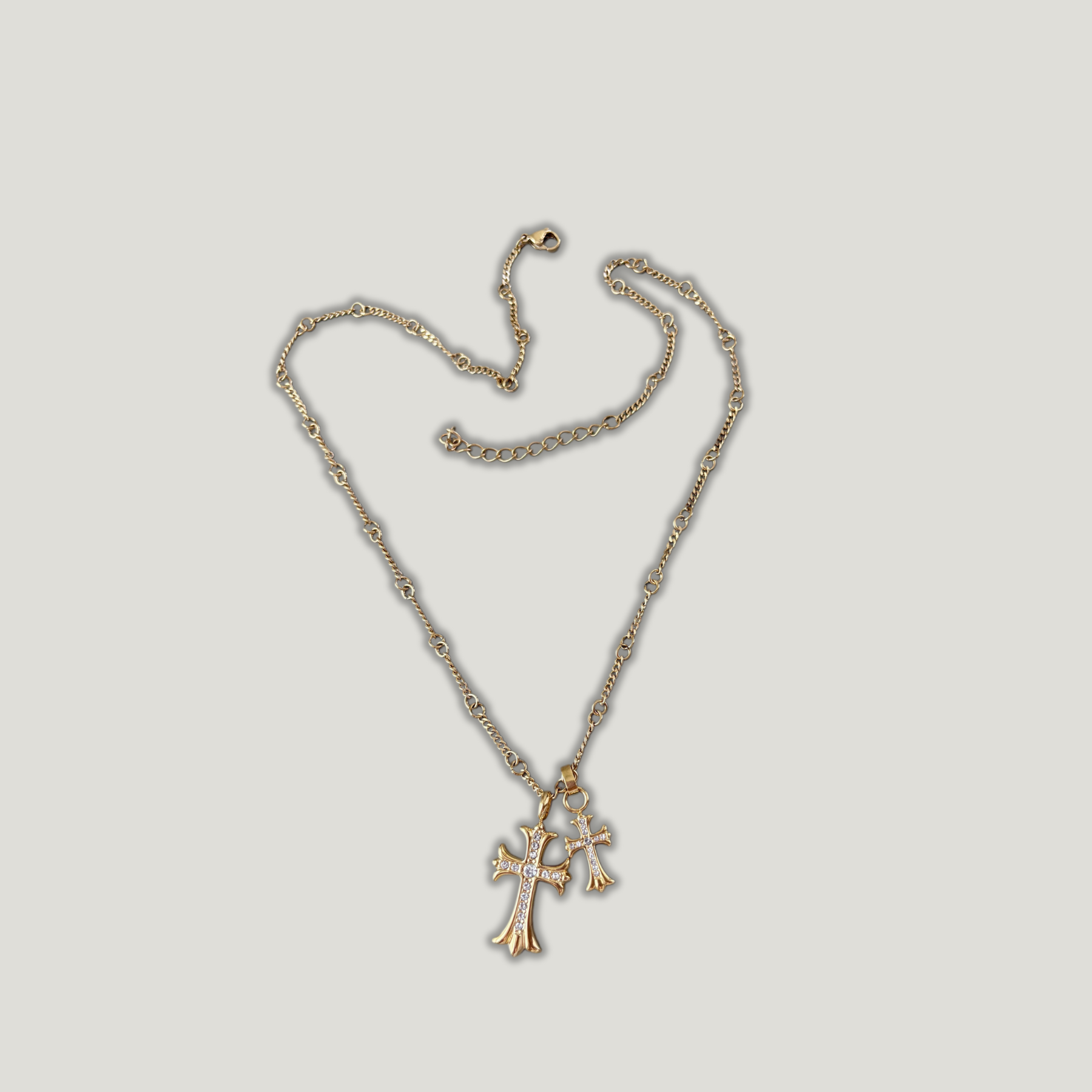 Turn heads and express your style with the Zircon Two Cross Pendant Necklace – a striking piece designed to blend bold symbolism with refined glam. Featuring two intricately detailed cross pendants, each encrusted with shimmering zircon stones, this necklace brings layered dimension to your look — all in one chain.